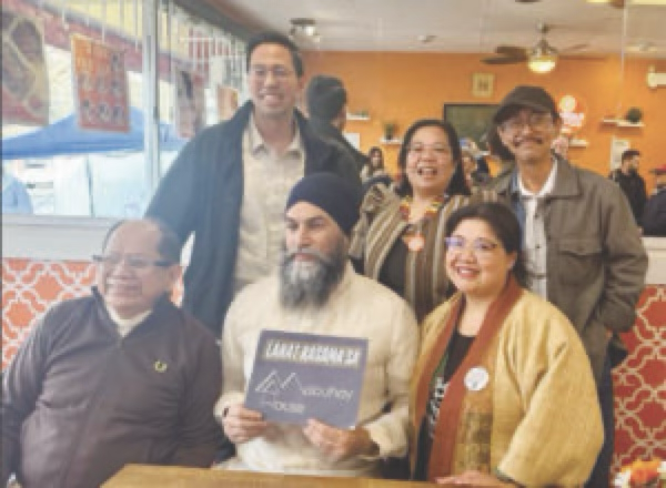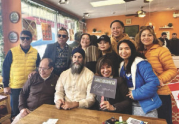 Singh, J. (2025, March 31). Jagmeet Singh poses with the Filipino community during the NDP rally at the Plato Pilipino in Vancouver. Facebook.