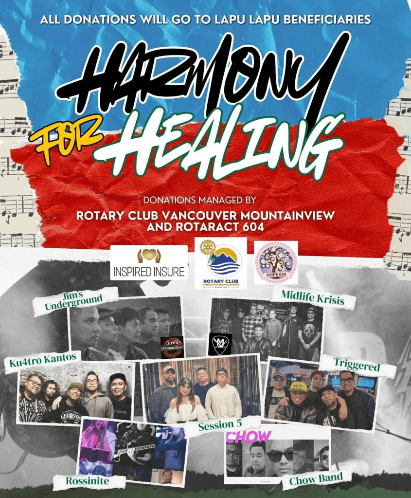 VANCOUVER PINOY BANDS FOR LAPU-LAPU. 7 top Filipino-Canadian bands based in Vancouver volunteered together for a night of charity performance to raise funds for the benefit of Lapu-Lapu tragedy victims. Jim’s Underground, Midlife Krisis, Ku4tro Kantos, Session 5, Triggered, Rossinite and Chow Band all performed to the full-packed venue One20 Pub in Delta last May 31, 2025.