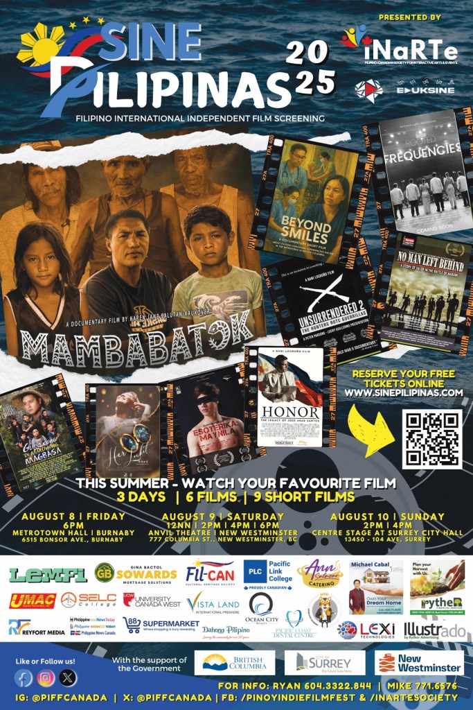 Vancouver, BC — A celebration of Filipino cinema is coming to Metro Vancouver this summer as SinePilipinas 2025, a Filipino international independent film festival, hosts screenings in Burnaby, New Westminster, and Surrey. The festival is organized by the INARTE Society, formally known as the Filipino-Canadian Society for Interactive Arts & Events.