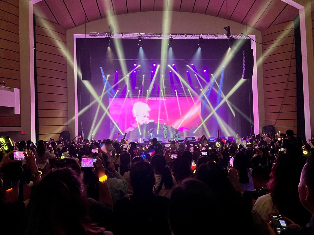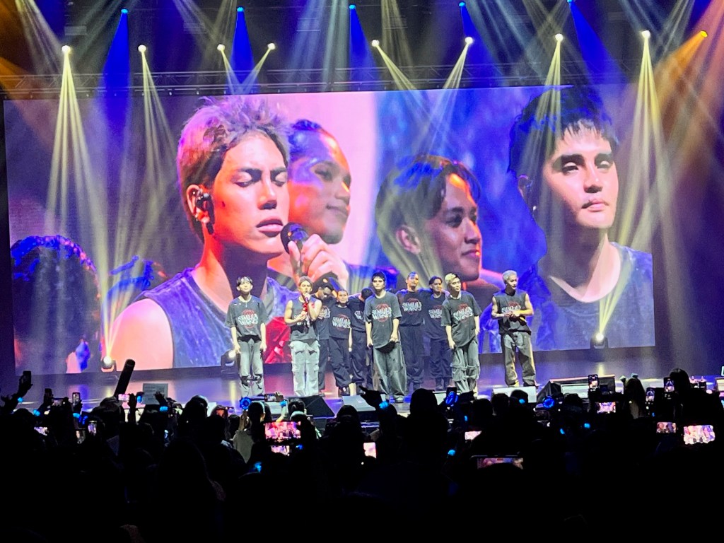 Fans entering the venue were given Philippine flags, transforming the stage into a visual celebration and spectacle. During SB19’s emotional dedication, the crowd waved white flowers and illuminated the arena with ELESBI light‑sticks, creating a striking tableau of unity and remembrance.