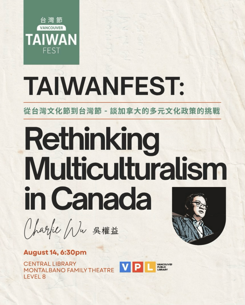 A full program (pdf as of August 7) of TAIWANfest events, including preliminary offerings, eg., a special presentation by Charlie Wu, the visionary Managing Director of TAIWANfest, is available at: <https://www.facebook.com/photo?fbid=1129942029237477&set=a.593865636178455>. On Thursday, August 14 at 6:30 p.m., Wu will lead a cultural dialogue that will invite open inquiry and challenge conventional notions of multiculturalism. Since 2001, he has played a key role in transforming TAIWANfest from a traditional community celebration into a dynamic cultural festival that engages the wider public through the arts. In 2021, Wu was honoured with the Outstanding Taiwanese-Canadian Award by the Taiwanese-Canadian Association.