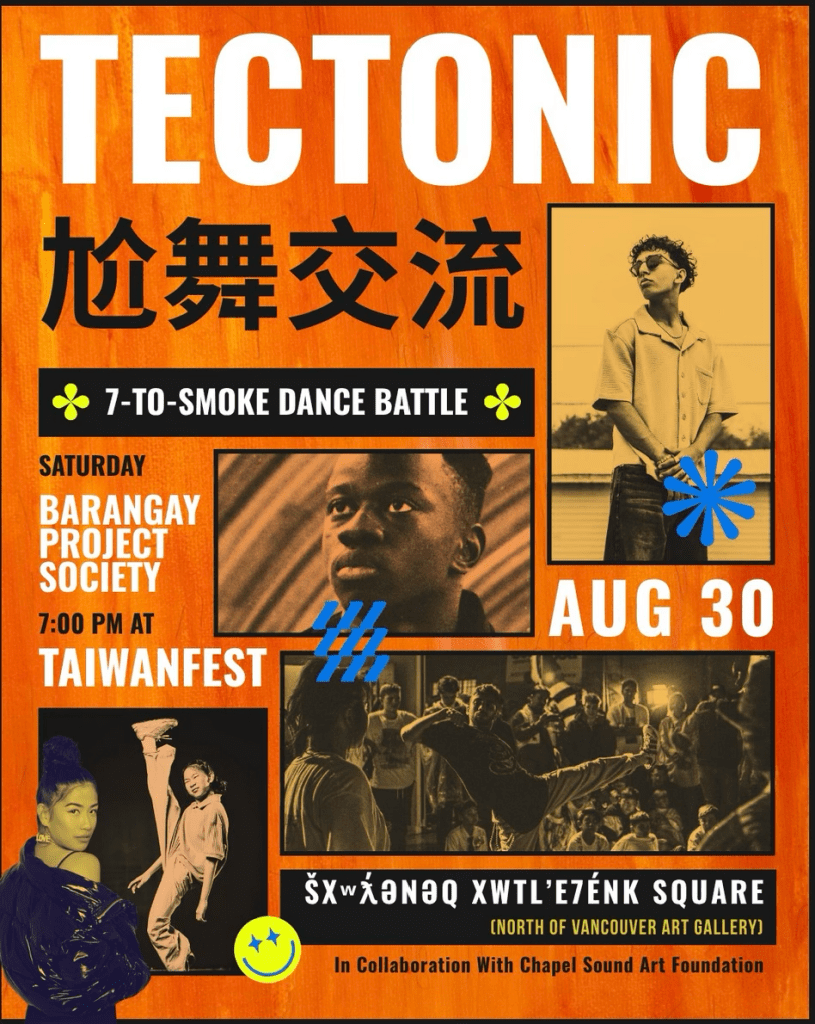 A highlight performance on Saturday evening (7:00–9:00 p.m.) features the Barangay Project Society, led by Filipina artist and first-generation immigrant Sophia Sosa. The group will showcase street dance culture, weaving stories of identity and community into contemporary movement and will feature some of Vancouver’s most talented young dancers.