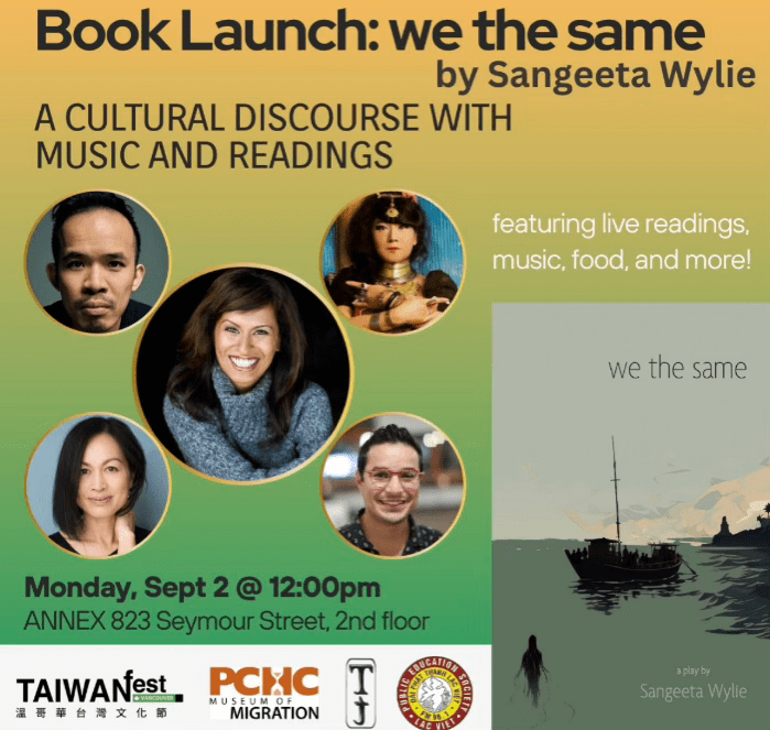 In 2024, the Pacific Canada Heritage Centre – Museum of Migration Society co-hosted a book launch of we the same, by Sangeeta Wylie at TAIWANfest. Inspired by a true story, we the same is about a family fleeing the Vietnam War by boat and their harrowing and heartfelt tale of survival against all odds. This story was also performed as a play in 2021. This book launch featured a live panel and reading, food, and music.