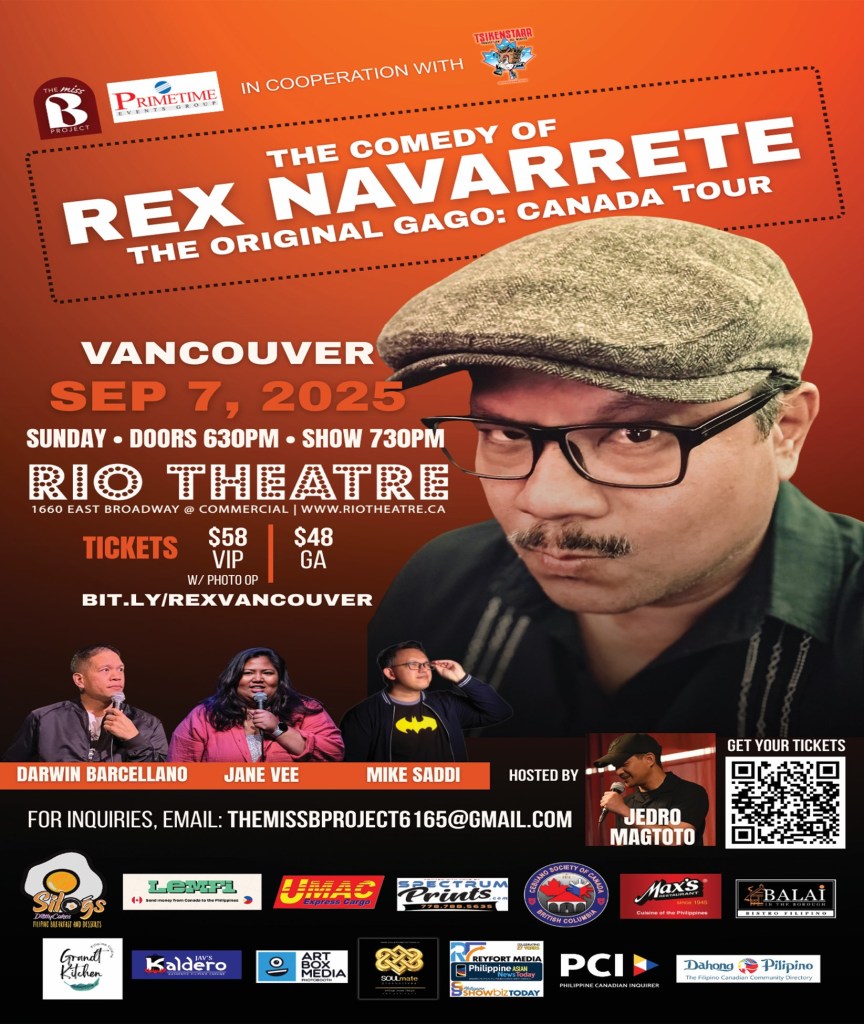Vancouver, BC — Brace yourselves, Vancouver: the king of Filipino-American stand-up, Rex Navarrete, is set to take over the stage at the Rio Theatre (1660 East Broadway, Vancouver, BC) on Sunday, September 7, 2025. Doors open at 6:30 PM, with the show starting at 7:30 PM.
