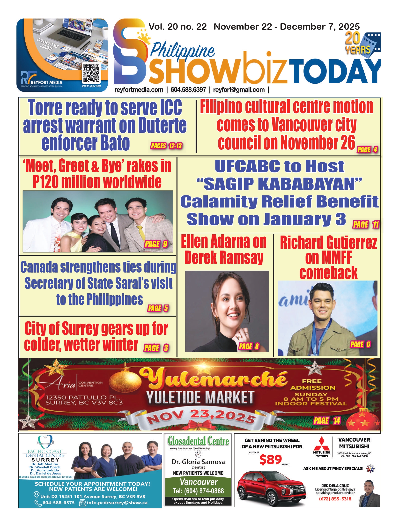 The latest digital issue of Philippine Showbiz Today hard copies are available at your favourite Filipino stores, restaurants, dental clinics, 88 Supermarkets, Save-on Supermarkets, Price Mart, Lucky Supermarket, Foody World and other businesses.