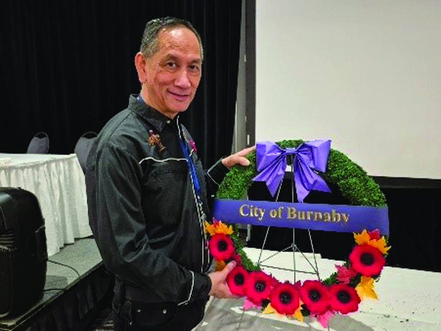 Mayor Mike Hurley, Councillor Sav Dhaliwal, and Burnaby Village Museum Interpreter Elwin Xie presented the City of Burnaby wreath. Xie represented Richard Samuel Lee, Burnaby’s first Chinese Canadian staff member. Lee, a respected community advocate in the 1950s played a key role in the repeal of Burnaby’s 1892 Bylaw 4 which had prohibited the employment of Chinese and Japanese workers by the municipality or any of its contractors. The apology in English, traditional and simplified Chinese is available on the CoB website at https://www.burnaby.ca/our-city/diversity-and-inclusion/apology-for-historic-discrimination-against-people-of-chinese-descent .