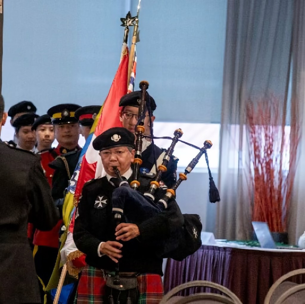 Following the historical presentation, piper Carolyn Y.M. Ng led the military Service of Remembrance March On of the Colour Party. Wreaths were then laid by representatives of the Chinese Canadian Military Museum, South Burnaby Legion 83 and North Burnaby Legion 148, St. John Ambulance BC / Yukon wreath and the City of Burnaby.