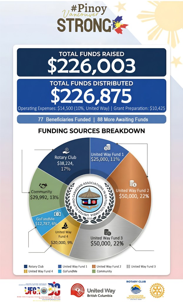 The Filipino community is asking the public to follow UFCABC’s example and is inviting and encouraging all organizations that conducted fundraising efforts, received donations, or accessed funds through United Way or other channels to adopt the same level of openness, by sharing financial accountability in a manner that fully respects the confidentiality, dignity, and safety of beneficiaries.