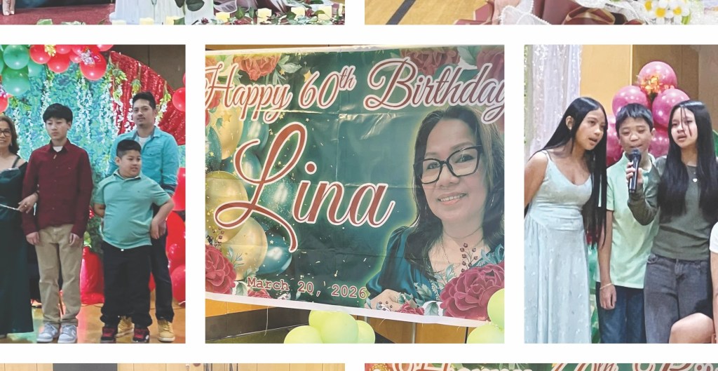 Vancouver, March 22.—Lina Castillo-Alpuerto marked and celebrated her 60th birthday with at least 300 family members, co-workers, friends, and churchmates at the St. Patrick’s Gym on Main Street.