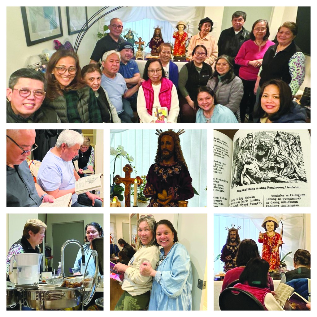 It was also my second time to join the Pabasa/Reading of the Pasyon, the first time in a barrio chapel in Cavite and the second time in a Vancouver home. The Pabasa is the uninterrupted chanting or reading of the Pasyon, the Philippine epic narrative of the life of Jesus, his passion, death and resurrection. The family of Maria Fe and Catalina Samson and their extended families have kept their Reading/Pabasa in Canada, a holy week panata/vow that was started in the Philippines and which they have kept alive. The chanters or readers face the altar with the family’s religious icons, the most prominent of which is the Samson family heirloom, a wooden statue of Jesus holding a piece of bread. Thank you, Maria Fe and Catalina for inviting me!